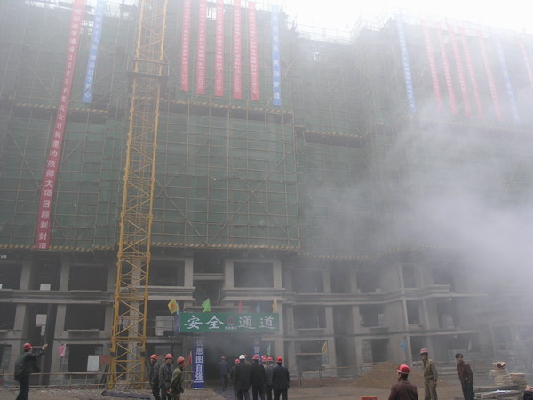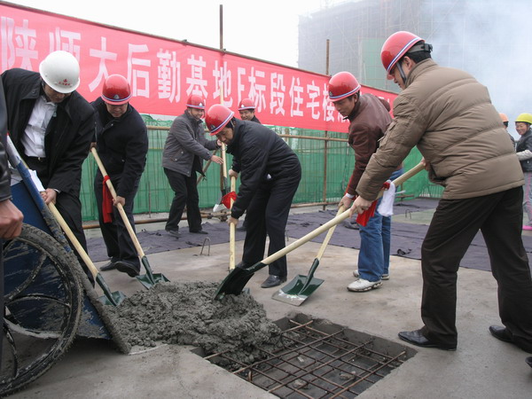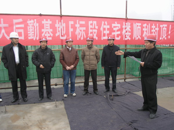 2007年12月12日,我校长安校区11号住宅楼顺利封顶。参加封项的有校长助理冯旭东、基建处刘继波处长、王宗让副处长、施工科全体成员以及长安校区各施工单位、监理单位的负责人。封项仪式由基建处施工科董民录科长主持。