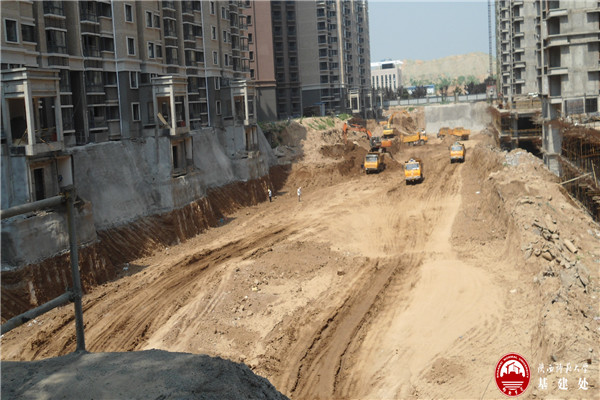 长安校区住宅楼地下车库工程是制约住宅楼工程总进度的关键环节,土方开挖、外运一方面受制约政府限制土方外运的各种政策,另一方面受制约于现场村民土方机械因素。